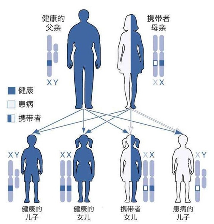 爸爸患病,妈妈一切正常,闺女100%带上,孩子一切正常。留意,闺女成年人后生孕男孩儿时,该男孩儿50%患病。这就是基因遗传,传男不传女的主要表现。
